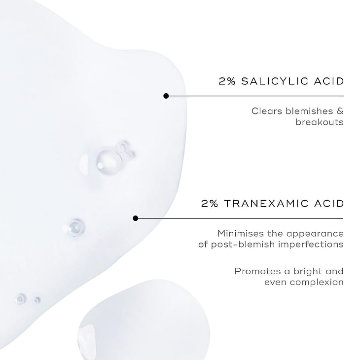 Press & Clear on kuoriva BHA-kasvovesi (betahydroksidihappo), joka sisältää 2 % kapseloitua salisylihappoa, tekee ihosta selvästi kirkkaamman ja tasaisemman. Kosteuttava all-in-one-kasvovesi, joka ennaltaehkäisee ja hoitaa näppylöitä ja aknea. Huolellisesti suunniteltu koostumus ja korkea pH-arvo 5,5 tekevät tästä kasvovedestä innovatiivisen kasvoveden, joka vaikuttaa aktiivisesti epäpuhtaaseen ihoon ja on silti hellävarainen herkälle iholle. Pigmenttiläikät haalistuvat, näppylät ja epäpuhtaudet vähenevät ja ihosta tulee kirkkaampi ja kosteutetumpi ja ihon suojakerros saa runsaasti ravintoa.