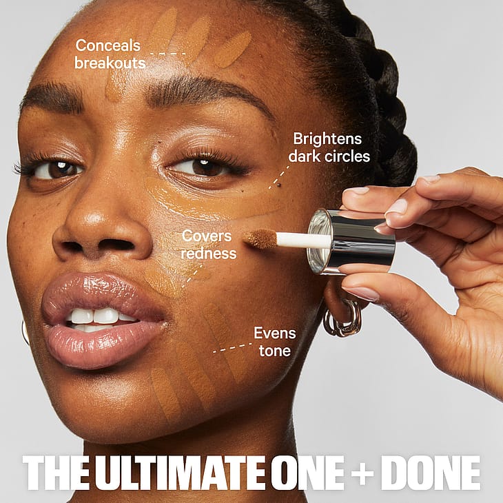Monikäyttöinen, keskipeittävästä täyteen peittävä peitevoide, joka peittää, muotoilee ja kosteuttaa ja antaa kevyen, rypistymättömän ja luonnollisen lopputuloksen. Tämä kosteuttava peitevoide peittää nopeasti epäpuhtaudet, tummia silmänalusia ja punoitusta ja auttaa samalla parantamaan ihosi ulkonäköä ajan myötä, kiitos sen ihon suojakerrosta palauttavan Hyaluronic AI Plant Complexin. 92-prosenttisesti luonnollista, pitkäkestoista koostumusta voidaan käyttää myös korostamaan ja muotoilemaan pehmeästi muotoiltua ilmettä. 100% vegaani.