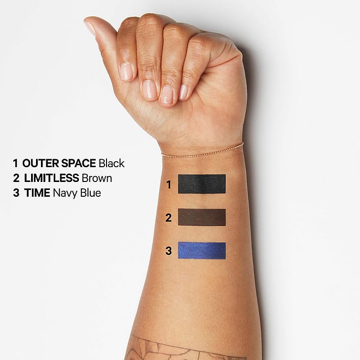 Täyteläinen, kierrettävä vedenkestävä eyeliner liukuu iholle pehmeästi intensiivisellä värillä, joka pysyy jopa 12 tunnin ajan. Eyelinerin avulla voit luoda äärettömästi eri tyylejä – kierrä, teroita, häivytä. Irrotettavalla teroittimella mahdollistat täsmällisen ja terävän rajauksen luomisen, sisäänrakennetun siveltimen avulla luot nopeasti utuisen silmämeikin. Puhdas, oftalmologisesti testattu koostumus sopii käytettäväksi vesirajan rajaukseen ja liukuu iholle pehmeästi, vetämättä ihoa. 100% vegaani.