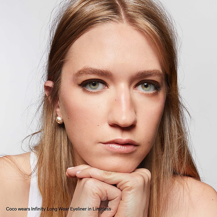 Täyteläinen, kierrettävä vedenkestävä eyeliner liukuu iholle pehmeästi intensiivisellä värillä, joka pysyy jopa 12 tunnin ajan. Eyelinerin avulla voit luoda äärettömästi eri tyylejä – kierrä, teroita, häivytä. Irrotettavalla teroittimella mahdollistat täsmällisen ja terävän rajauksen luomisen, sisäänrakennetun siveltimen avulla luot nopeasti utuisen silmämeikin. Puhdas, oftalmologisesti testattu koostumus sopii käytettäväksi vesirajan rajaukseen ja liukuu iholle pehmeästi, vetämättä ihoa. 100% vegaani.