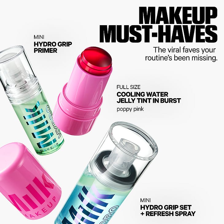 Ultimaattinen trio suosituimpia clean beauty -tuotteita! Tämä setti sisältää täysikokoisen Jelly Blushin sekä matkakoossa Hydro Grip Primerin ja Setting Sprayn – kolme ihonhoitoa tukevia meikkituotteita, joita et halua jättää väliin! Hydro Grip Primer on 13 kertaa palkittu, ihonhoitoa tukeva ja ei-komedogeeninen geeli, joka pitää meikin paikallaan jopa 12 tuntia ilman haalistumista tai juonteisiin kerääntymistä. Cooling Water Jelly Tint on kuuluisa ensimmäinen laatuaan oleva jelly blush ja huuliväri, joka liukuu iholle ja antaa kevyen, pitkäkestoisen ja kerrostettavan värin raikkaaseen ilmeeseen. Hydro Grip Set + Refresh Spray on painoton ja alkoholiton kiinnityssuihke, joka on rikastettu ihonhoitavilla ainesosilla ja pitää meikin paikoillaan koko päivän, samalla antaen ihanan hehkun.