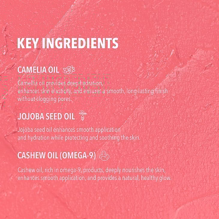 KÄYTTÖ: Voidaan käyttää sellaisenaan tai meikin päällä. Levitä kevyesti poskipäille ja huulille luonnollisen värin saamiseksi. Taputtele varovasti puhtaalla sormella häivyttääksesi. Kerrosta halutessasi.
