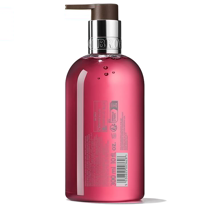 Molton Brown Fiery Pink Pepper Fine Liquid Hand Wash kosteuttava käsisaippua antaa ylellisen ja miellyttävän puhdistavan elämyksen. Sisältää mausteisen roseepippurin, lämpimän inkiväärin ja täyteläisen patsulin eloisia nuotteja antaen iholle virkistävän, aromaattisen tuoksun. Käytä yhdessä yhteensopivan Molton Brown -käsiemulsion kanssa vahvistaaksesi ihanaa puuvivahteista ja mausteista tuoksua.