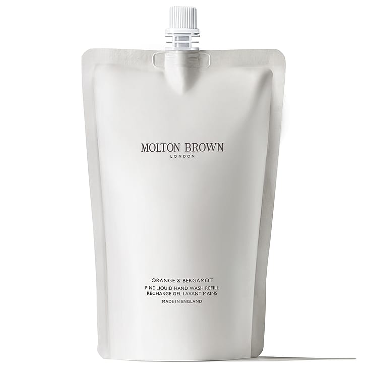 Molton Brown Orange & Bergamot Fine Liquid Hand Wash Refill -uudelleentäyttöpakkauksella täytät Molton Brown -muovi- tai -lasipullosi uudelleen. Virkistävä ja kosteuttava käsisaippua antaa ylellisen ja miellyttävän puhdistavan elämyksen. Sisältää raikkaan appelsiinin, kukkivan nerolin ja viipyvän myskin eloisia ja virkistäviä nuotteja. Käytä yhdessä yhteensopivan Molton Brown -käsiemulsion kanssa vahvistaaksesi eloisaa sitrustuoksua. Uudelleentäyttöpakkaus sisältää 63 % vähemmän muovia kuin tavalliset Molton Brown -pullot.