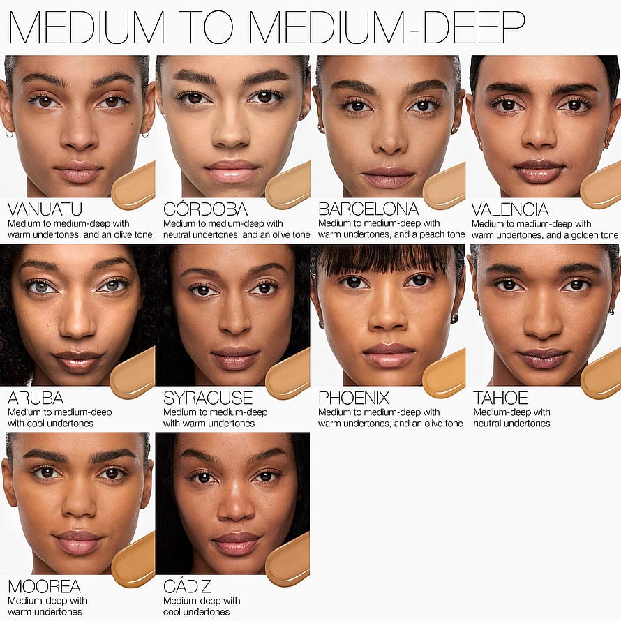 • Hengittävä, seerumimainen koostumus, joka tarjoaa puolipeittävän–täyden peittävyyden ja luonnollisen mattapinnan.
