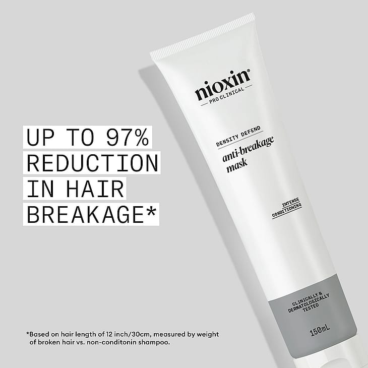 "Nioxin Anti-Breakage Strengthening Mask on korjaava hiusnaamio värjätyille tai vaurioituneille hiuksille. Ammattimainen hiusten ohentumista ehkäisevä tehohoito vähentää hiusten katkeilua jopa 97 %* ja tekee hiuksista joustavammat ja helpommin käsiteltävät. Anti-Breakage Strengthening Mask syväravitsee kuivia tai värjättyjä hiuksia ja suojaa kaikkia hiustyyppejä vaurioilta.
