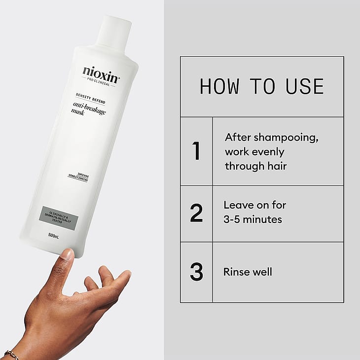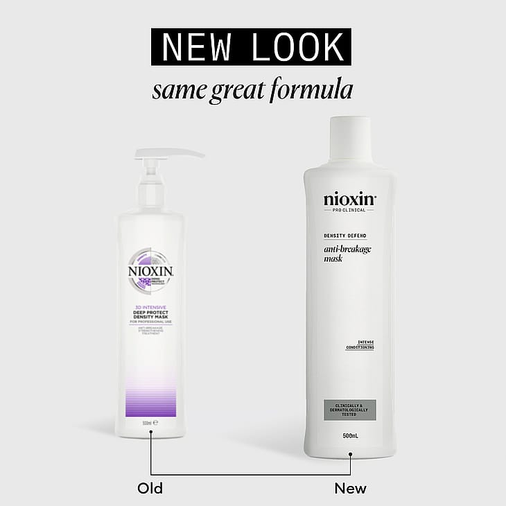Uusi look, sama upea koostumus. Nioxin Anti-Breakage Strengthening Mask on sama kuin aiempi Nioxin Deep Protect Density Mask -hiusnaamio, jota kutsutaan myös nimellä Deep Repair Mask. Korjaava ja hoitava naamio on saanut uuden ulkonäön ja nimen: The Nioxin Anti-Breakage Strengthening Mask. Saatavana kaksi kokoa: 150 ml ja 500 ml.