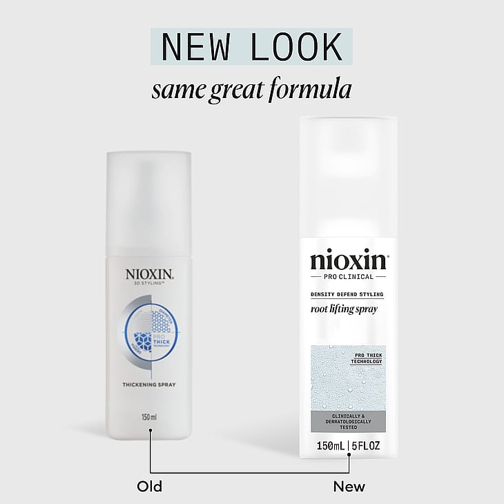 Uusi look, sama upea koostumus. Nioxin Root Lifting Spray on sama kuin aiempi Nioxin Thickening Spray uudella nimellä. "