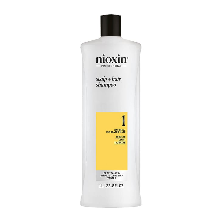 Nioxin System 1 Cleanser -shampoo käsittelemättömille, lievästi ohentuneille hiuksille. Kolmiosaisen Nioxin-hiustenhoitojärjestelmän ensimmäinen vaihe. Shampoo vahvistaa hiuksia ja hiusten rakennetta, puhdistaa ja poistaa lian, ylimääräisen talin ja muut ympäristöjäämät hiuspohjasta ja hiuksista. Kliinisesti ja dermatologisesti testattu shampoo sisältää niasiiniamidia ja biotiinia, jotka kosteuttavat hiuspohjaa ja hiuksia tyvestä latvaan sekä tekevät hiuksista paksummat ja vahvistavat niiden rakennetta. Saat parhaan lopputuloksen käyttämällä yhdessä Nioxin System 1 -hoitoaineen ja Nioxin System 1 Treatmentin kanssa. Saatavana kaksi kokoa: 300 ml ja 1000 ml.
