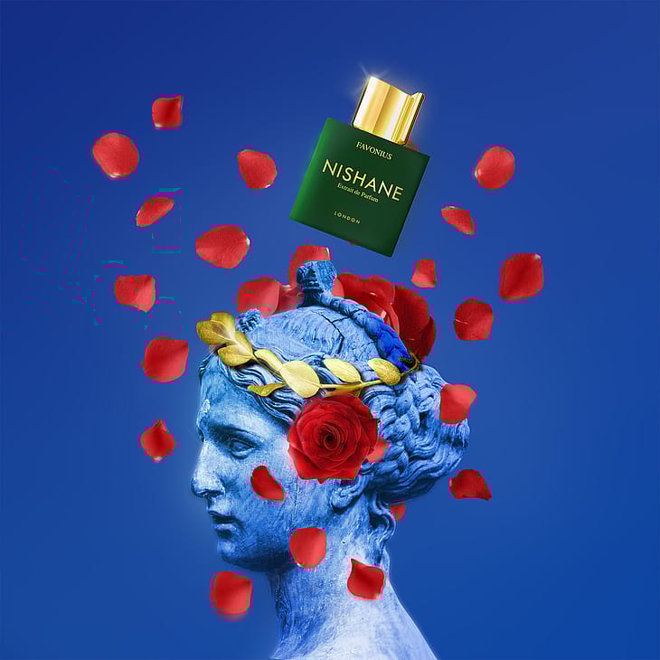 Kukkivan puutarhan suloisuudessa, kirkkaanvihreässä ja läpinäkyvien lehtien täyttämässä puutarhassa nukkuu kukkien jumalatar. Aamun ensimmäisten säteiden alla bergamotti loistaa kuin aamukaste. Vaaleanpunaisen pippurin viileiden trillien ja sitruunaisen suitsukkeen vivahteen kohottamana ruusu saa ensimmäiset värinsä, ja hitaasti esiin nousee häilyviä teetä, orvokkia ja hunajaa. Kun Flora avaa silmänsä, Geraniumin kasvimainen säteily, Artemisiian hedelmäinen makeus ja aromaattinen tuoksu heräävät, yllätettyinä favonisesta tuulesta, joka kuljettaa tuoksuja kaukaisista maista. Niiden puuterimaiset, bukoliset vivahteet peittyvät Oudin voimakkaan eläimellisyyden alle, jota Cypriolin maanläheinen meripihka ja voimakkaan indonesialaisen patšoulin suklaiset vivahteet vahvistavat, ja kaikki nämä vivahteet venytetään setripuun ja santelipuun kaksikolla. Suotuisten tuulien jumala on palannut rakastettunsa luo.