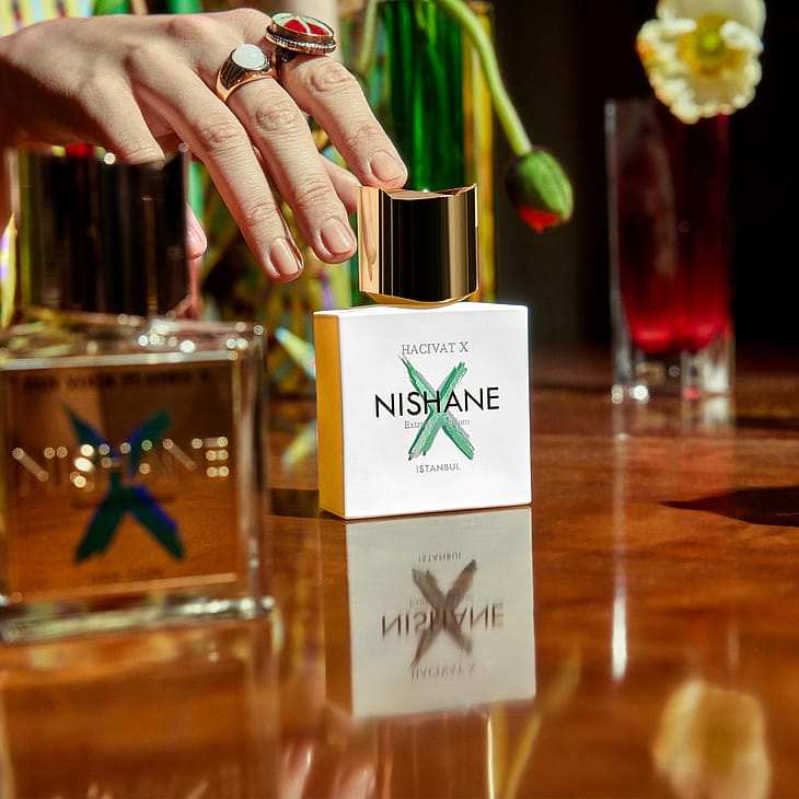 HACIVAT X on uusi tulkinta NISHANEn maailmanlaajuisesta hitistä HACIVAT (lanseerattiin vuonna 2017), ja se on kunnianosoitus perinteiselle varjopelihahmolle chypre-rakenteella, joka huokuu eleganssia, pätevyyttä ja rakkautta taiteeseen. Tämä tuoksu on elämän juhlinta, ja siinä on stimuloivia ananaksen ja bergamotin sävyjä, joita tukevat puumaiset sävyt. Tuoksun päällimmäisissä tuoksuissa on mehukasta ananasta, kirpeää bergamottia ja mausteista vaaleanpunaista pippuria, ja ne johtavat sydämeen, jossa on virkistävää limeä, herkkää jasmiinia ja appelsiininkukkaa. Pohjatuoksussa on maanläheistä patsulia, puumaista setripuuta ja Haitin vetiveriä.