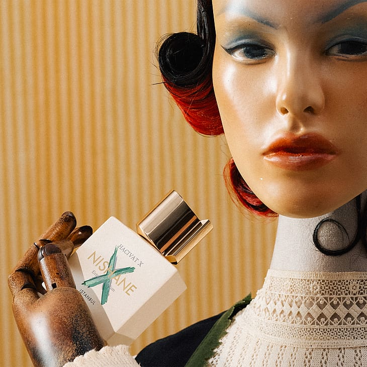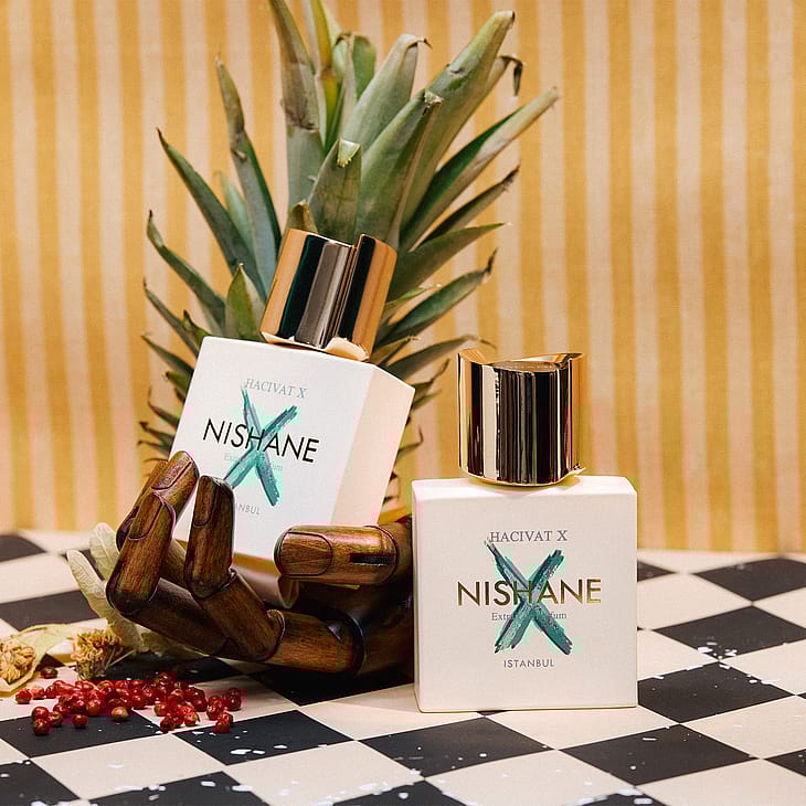 HACIVAT X on uusi tulkinta NISHANEn maailmanlaajuisesta hitistä HACIVAT (lanseerattiin vuonna 2017), ja se on kunnianosoitus perinteiselle varjopelihahmolle chypre-rakenteella, joka huokuu eleganssia, pätevyyttä ja rakkautta taiteeseen. Tämä tuoksu on elämän juhlinta, ja siinä on stimuloivia ananaksen ja bergamotin sävyjä, joita tukevat puumaiset sävyt. Tuoksun päällimmäisissä tuoksuissa on mehukasta ananasta, kirpeää bergamottia ja mausteista vaaleanpunaista pippuria, ja ne johtavat sydämeen, jossa on virkistävää limeä, herkkää jasmiinia ja appelsiininkukkaa. Pohjatuoksussa on maanläheistä patsulia, puumaista setripuuta ja Haitin vetiveriä.