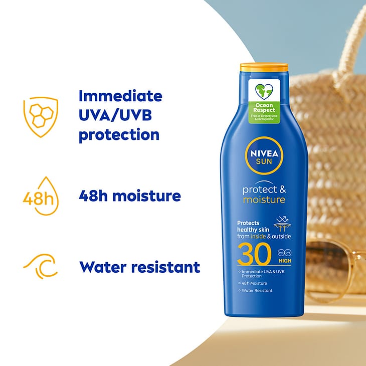 Antaa välittömästi turvallisen aurinkosuojan. Ihanteellinen UVA- ja UVB-suodattimien tasapaino. Vähentää aurinkoallergian riskiä. E-vitamiini ehkäisee vapaita radikaaleja. Ensimmäinen aurinkosuoja, joka suojaa myös vaatteitasi UV-suodattimen aiheuttamilta keltaisilta tahroilta. Vedenkestävä. Aurinkosuojakerroin 30. Kaikille ihotyypeille.