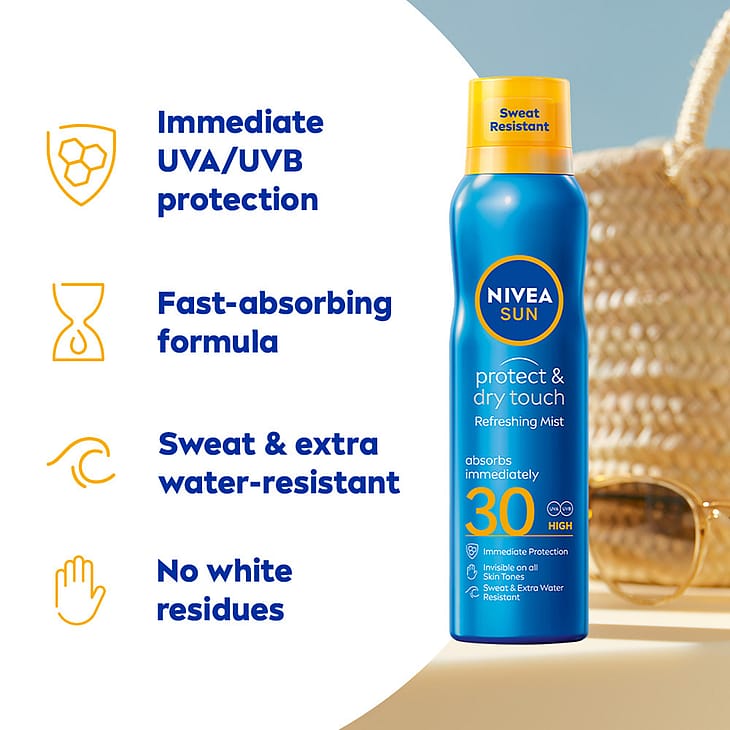 Välittömästi suojaava innovatiivinen tuote viilentää ihoa miellyttävästi ja saa aikaan ihanan virkistävän tunteen. Aerosolipulloa voidaan käyttää miten päin vain, joten tuotteen levittäminen sujuu nopeasti ja helposti.