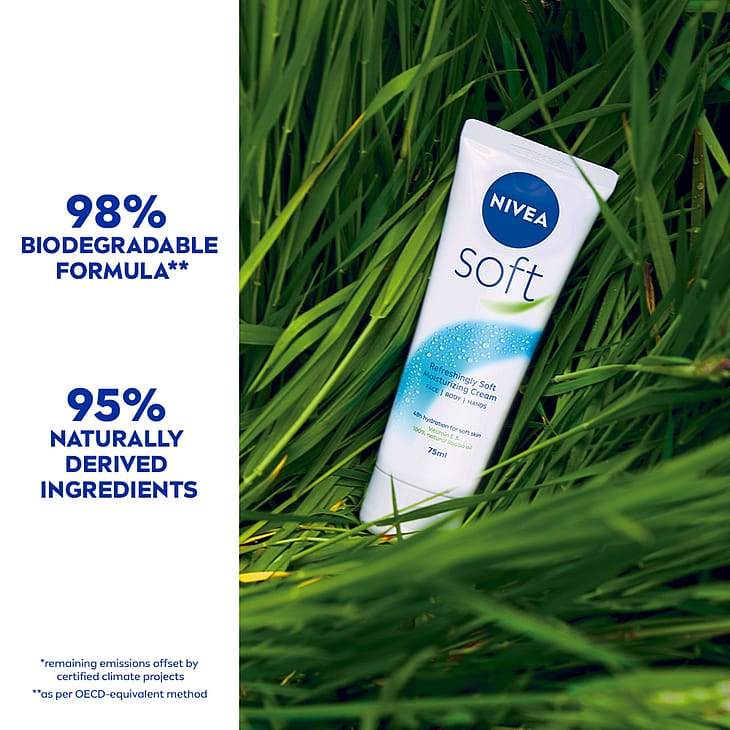 NIVEA Soft -kosteusvoide ravitsee ja kosteuttaa ihoa tehokkaasti 48 tunnin ajan. Monikäyttöinen ja kätevä voide päivittäiseen käyttöön.