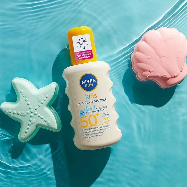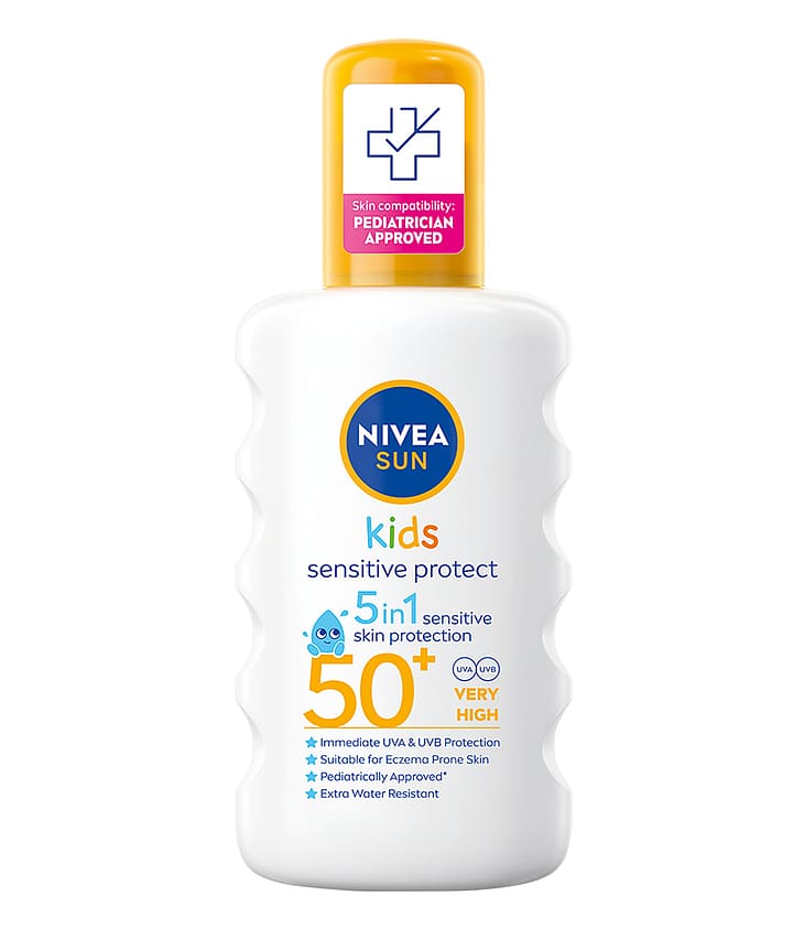NIVEA SUN KIDS Sensitive Protect & Play on NIVEAn ihonhoitoasiantuntijoiden erityisesti lasten herkälle iholle kehittämä tuotesarja. Tuote niissä on korkea suojakerroin, joka vähentää aurinkoihottuman riskiä. Dermatologisesti testattu lasten herkällä iholla. Tuote on erityisen vedenkestävä. Anti-Stains After Wash -koostumus pitää huolen, ettei vaatteisiin jää tahroja. Kaikki NIVEA SUN -tuotteet ovat Hawaii Reef Bill -aloitteen mukaisia.