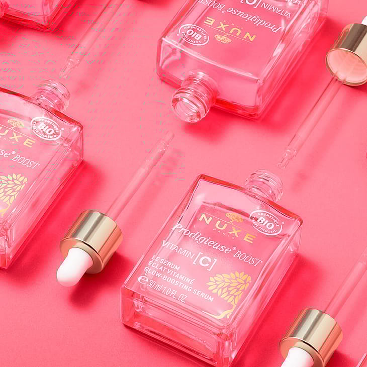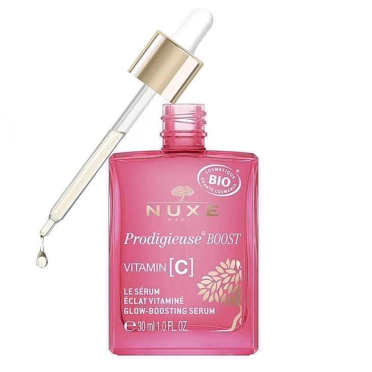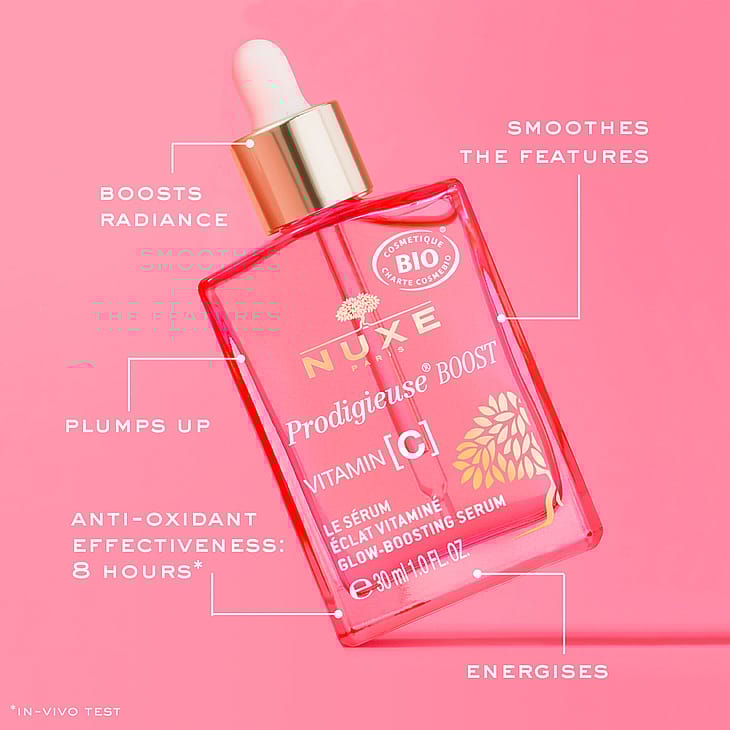 Anna iholle hehkua ja raikkautta Nuxe Prodigieuse Boost Vitamin C Glow Serum -seerumilla! Heleyttävä ja monitehoisesti korjaava seerumi sisältää stabilisoitua C-vitamiinia, joka tekee ihosta tasaisemman ja energisemmän näköisen. Lisäksi seerumi vastustaa ja vähentää ikääntymisen ensimerkkejä ja antaa iholle täyteläisyyttä tehden siitä raikkaan ja nuorekkaamman näköisen. Seerumi sopii samealle, väsyneen oloiselle ja epätasaiselle iholle, joka on menettänyt täyteläisyyttään ja jolla näkyy ensimmäisiä ikääntymisen merkkejä.
