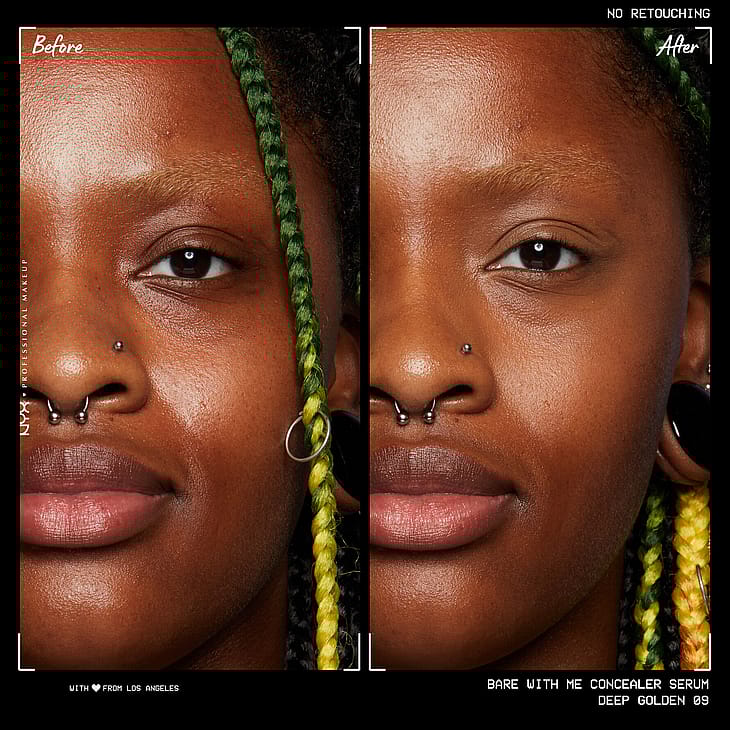 Stressaatko ihostasi? Ei tänään! Tutustu hoitavaan peitevoideseerumiimme kasvoille ja vartalolle. NYX Professional Makeup Bare With Me Concealer Serum -peitevoideseerumi. Vegaaninen koostumus*kosteuttaa ihoa jopa 24 tuntia ja iho tuntuu kosteutetulta koko päivän. Ihonhoito ja meikki yhdistyvät! Tummat silmänaluset, epäpuhtauksia ja ihon sävyn epätasaisuuksia? Hetkessä peitetty! Punoitusta ja ihon kuivumista? Ei enää! Koostumus sisältää Tremella-sientä, rohtosammakonputkea ja vihreää teetä. Saatavana useissa sävyissä. Piilota ihon ongelma-alueet samalla kun kosteutat ihoasi! Ei näytä kakkumaiselta ja tuntuu kevyeltä iholla. Lopeta ihostasi stressaaminen ja nauti tasaisesta ja kosteutetusta ihosta. Saat peittävyyttä ilman kakkumaista vaikutelmaa ja luonnolliselta näyttävän lähes huomaamattoman lopputuloksen. Saat ihoa hoitavia ominaisuuksia vain yhdellä pumppauksella. Helppo ja tasainen levitys, luonnolliselta näyttävä peittävyys ja jopa 24 tuntia kosteutta.