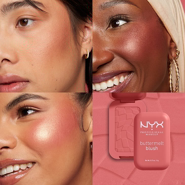 NYX Professional Makeup Buttermelt Blush runsaspigmenttinen poskipuna on helppo levittää ja kestää pitkään. Voidemainen koostumus sisältää runsaasti pigmenttejä ja se on helppo häivyttää. Koostumus sisältää mango-, manteli- ja karitevoita. Saat parhaan lopputuloksen käyttämällä levitykseen Buttermelt Brush -meikkisivellintä. Luo haluamasi look herkistä vaaleanpunaisista sävyistä persikkaan ja fuksiaan. Valitse täydellisesti ihoon sointuvista tai runsaammin väriä antavistaa sävyistä.