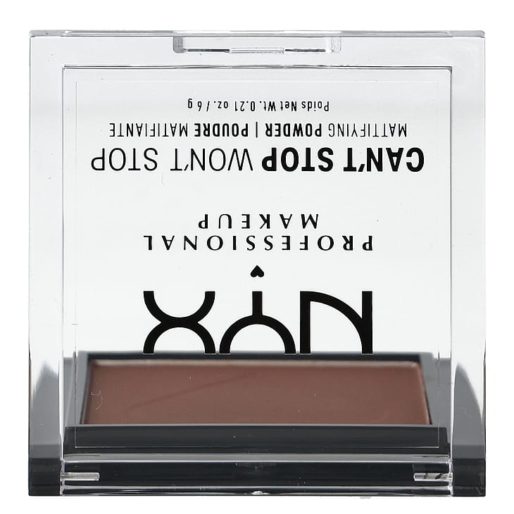 NYX Professional Makeup Can't Stop Won't Stop Mattifying Powder -puuteri antaa iholle välittömästi mattapintaisen lopputuloksen ja hillitsee ihon kiiltoa ja rasvaisuutta. Kevyt, vegaaninen koostumus* antaa iholle tasaisen, matan lopputuloksen näyttämättä kuivalta, kakkumaiselta tai tunkkaiselta. Läpikuultavat, kerrostettavat sävyt sulautuvat helposti iholle asettumatta pieniin juonteisiin ja antavat tasaisen, sileän lopputuloksen. Mattapuuteri pidentää meikkivoiteen kestoa ja mattapintaa tahraamatta, leviämättä ja muuttumatta! Puuteri hillitsee ihon kiiltoa koko päivän ja antaa erittäin mattapintaisen lopputuloksen, joka ei vaadi korjailua päivän mittaan.