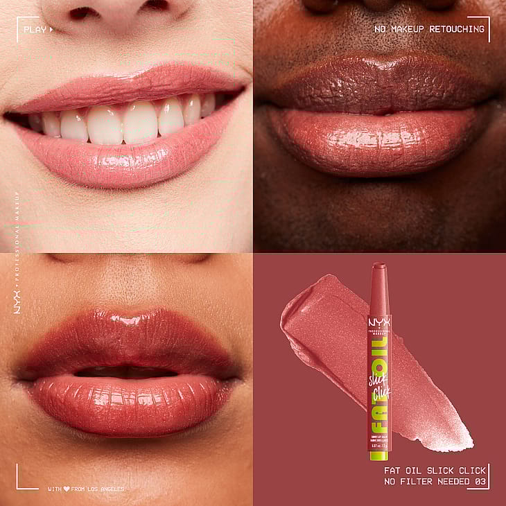 NYX Professional Makeup Fat Oil Slick Click sävyttävä huulivoide antaa juuri oikean määrän tuotetta yhdellä klikkauksella. Vegaaninen avokado-, lakka- ja vadelmaöljyä sisältävä koostumus* hoitaa huuliasi tehokkaasti.