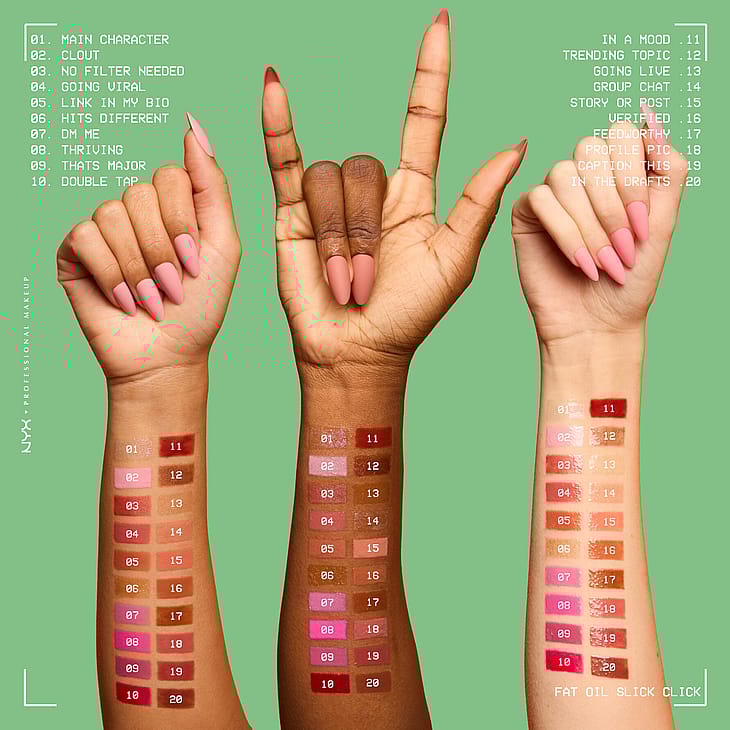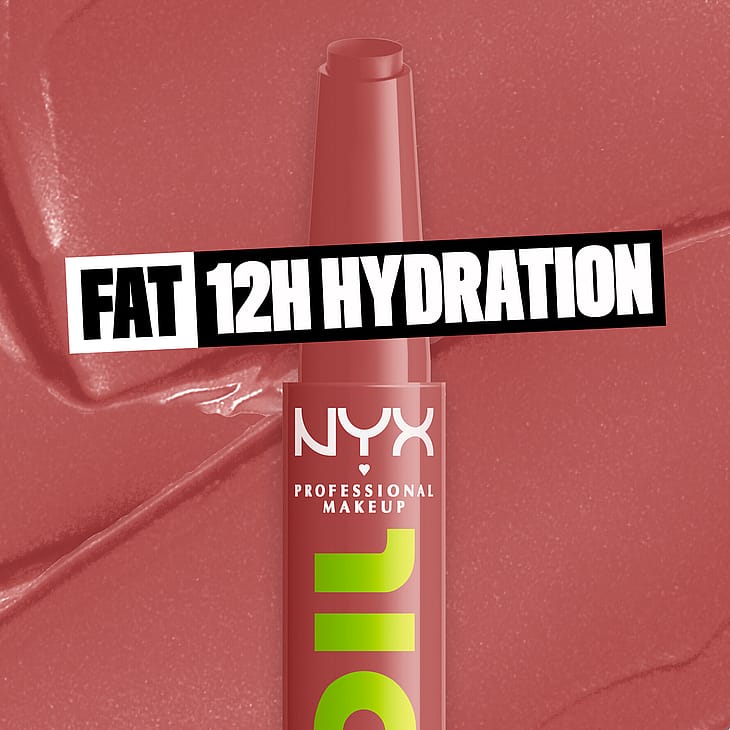 NYX Professional Makeup Fat Oil Slick Click sävyttävä huulivoide antaa juuri oikean määrän tuotetta yhdellä klikkauksella. Vegaaninen avokado-, lakka- ja vadelmaöljyä sisältävä koostumus* hoitaa huuliasi tehokkaasti.