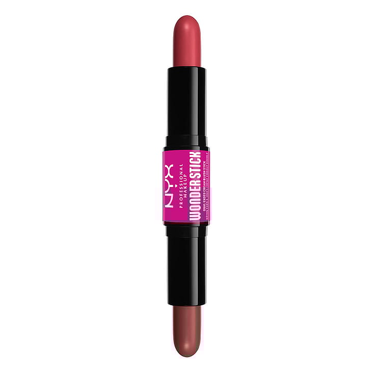 NYX Professional Makeup esittelee Wonder Stick kaksipäisen poskipunapuikon. Ensimmäinen kaksipäinen poskipunapuikkomme. Antaa väriä ja muotoilee kahdella helpolla askeleella. Anna kasvoillesi eloa hyaluronihappoa sisältävillä koostumuksilla kirkkaissa punaisissa sävyissä. Aloita levittämällä tummempaa sävyä antamaan muotoa kasvoillesi. Levitä sen jälkeen vaaleampaa sävyä poskipäillesi. Jos haluat luonnollisemman näköisen lopputuloksen, voit käyttää vain yhtä sävyä. Luonnollinen vai glam-look? Luo oma lookisi! Vegaaninen koostumus*.