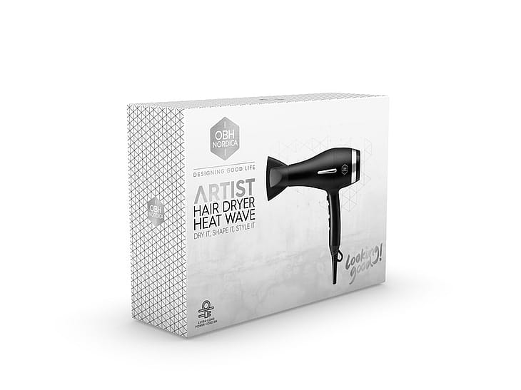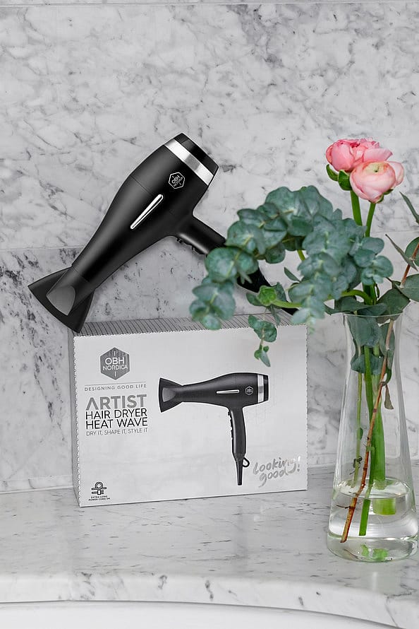 Etsitkö kevyttä ja hintansa arvoista hiustenkuivainta? Jos pistorasia sijaitsee kaukana peilistä, OBH Nordica Heat Wave ratkaisee tämän ongelman. Sen johdon pituus on 3 metriä! Heat Wave -kuivaimen kapea suutin keskittää ilmavirran, joten föönaat, muotoilet ja kiinnität kampauksesi helpommin. Valittavana on useita lämpötila- ja nopeusvaihtoehtoja sekä viileäpuhallus, joten saat haluamasi tulokset. Hiustenkuivaimessa on lisäksi kätevä ripustuskoukku. Teho 2 200 W.