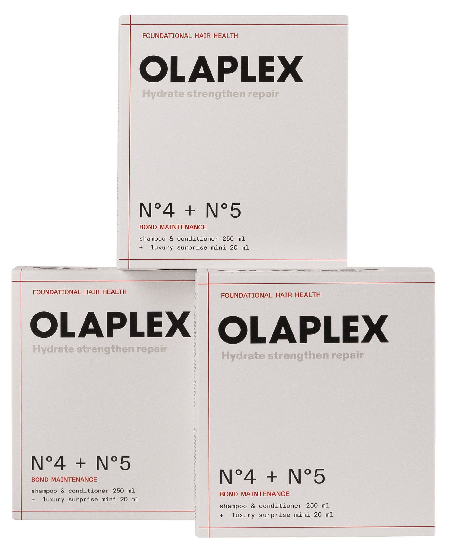 Tarjoa hiuksillesi täydellinen OLAPLEX-kokemus tämän eksklusiivisen pakkauksen avulla, joka sisältää kaksi ikonista suosikkia – No.4 Bond Maintenance® Shampoo ja No.5 Bond Maintenance® Conditioner – sekä Luxury Surprise Mini (20 ml) yhden OLAPLEXin myydyimmistä tuotteista. Täydellinen lahjaksi tai kotihoitoon salonkitasoisella laadulla.