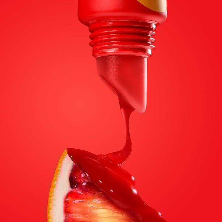 -Granaattiomena Fizz: Läpikuultava punainen sävy, jossa on makea granaattiomenan tuoksu.