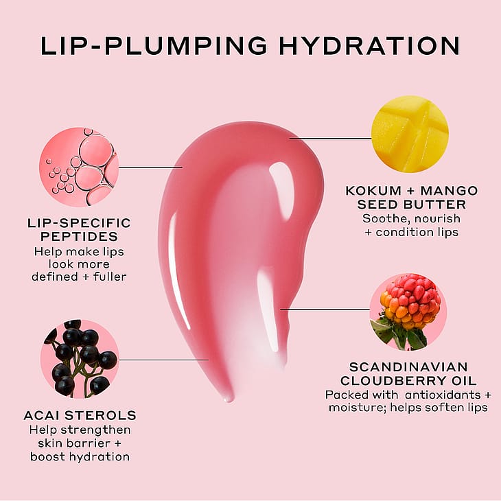 POLYBUTENE, HYDROGENATED POLYDECENE, BIS-DIGLYCERYL POLYACYLADIPATE-2, HYDROGENATED STYRENE/ISOPRENE COPOLYMER, CERA MICROCRISTALLINA/MICROCRYSTALLINE WAX/CIRE MICROCRISTALLINE, SILICA, RUBUS CHAMAEMORUS SEED OIL, GARCINIA INDICA SEED BUTTER, EUTERPE OLERACEA STEROLS, PALMITOYL HEXAPEPTIDE-12, PALMITOYL TRIPEPTIDE-1, TOCOPHERYL ACETATE, TOCOPHEROL, IRVINGIA GABONENSISKERNEL BUTTER, CITRUS AURANTIUM DULCIS (ORANGE) PEEL OIL, CITRUS AURANTIUM DULCIS (ORANGE) PEEL WAX, CITRUS AURANTIUM DULCIS (ORANGE) FRUIT EXTRACT, LINOLEIC ACID, LINOLENIC ACID, OLEIC ACID, LACTIC ACID, HELIANTHUS ANNUUS (SUNFLOWER) SEED OIL, CAPRYLIC/CAPRIC TRIGLYCERIDE, CERA CARNAUBA/COPERNICIA CERIFERA (CARNAUBA) WAX/CIRE DE CARNAUBA, HYDROGENATED COCO-GLYCERIDES, SORBITAN ISOSTEARATE, PENTAERYTHRITYL TETRAISOSTEARATE, PENTAERYTHRITYL TETRA-DI-T-BUTYL HYDROXYHYDROCINNAMATE, OCTYLDODECANOL, ETHYLHEXYL PALMITATE, DICALCIUM PHOSPHATE, TRIBEHENIN, PROPYLENE CARBONATE, STEARALKONIUM HECTORITE, PARFUM/FRAGRANCE, CITRAL, LIMONENE, LINALOOL, IRON OXIDES (CI 77491, CI 77492), TITANIUM DIOXIDE (CI 77891).