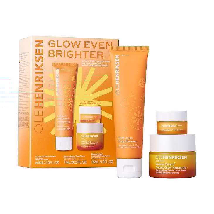 Loista vielä kirkkaammin tämän myydyimmän kolmikon avulla: Puhdista Truth Juice Daily Cleanserilla virkistääksesi ja elvyttääksesi, kosteuta ja kirkasta Banana Bright+ Instant Glow Moisturizerilla, ja vähennä tummia silmänalusia sekä paranna peitevoiteen pysyvyyttä myydyimmällä Banana Bright+ Eye Crèmellä.