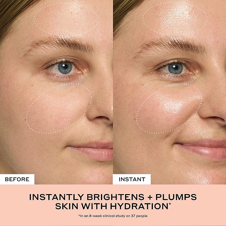 Tämä persikkavoimalla varustettu, pehmoinen geelimäinen seerumi liukuu iholle antaen välittömän, lasittuneen hehkun ja antioksidanttirikkaan kosteutuksen, joka kestää jopa 8 tuntia. Se paisuttaa ihoa välittömästi, tarkentaa huokosia ja antaa valoa heijastavan, heleän lopputuloksen samalla kun se kirkastaa ihoa ajan myötä.