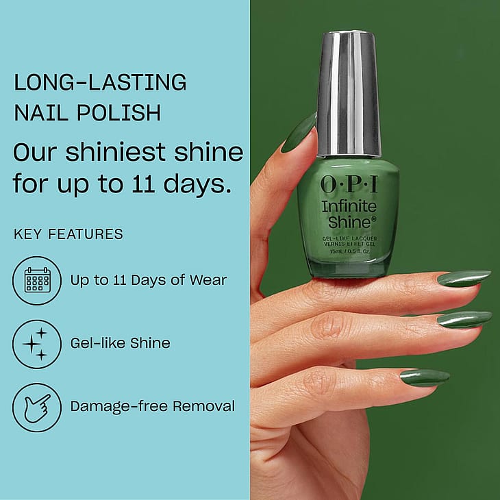 Locks like gel, unlocks like lacquer. OPI esittelee uuden mullistavan Infinite Shine -koostumuksen, jonka teknologia antaa kiiltoa, peittävyyttä ja pitkäaikaista kestoa jopa 11 päiväksi. Geelimäinen koostumus antaa sileän ja tasaisen peittävyyden ilman raitoja tai kuplia. Helppo poistaa asetonilla nopeasti ja vahingoittamatta kynttä. Niin hyvä, että sen luulisi olevan geelilakka. Infinite Shine yhdistää kaiken, mitä rakastat geeli- ja kynsilakassa.