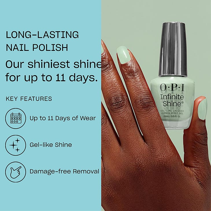 Locks like gel, unlocks like lacquer. OPI esittelee uuden mullistavan Infinite Shine -koostumuksen, jonka teknologia antaa kiiltoa, peittävyyttä ja pitkäaikaista kestoa jopa 11 päiväksi. Geelimäinen koostumus antaa sileän ja tasaisen peittävyyden ilman raitoja tai kuplia. Helppo poistaa asetonilla nopeasti ja vahingoittamatta kynttä. Niin hyvä, että sen luulisi olevan geelilakka. Infinite Shine yhdistää kaiken, mitä rakastat geeli- ja kynsilakassa.