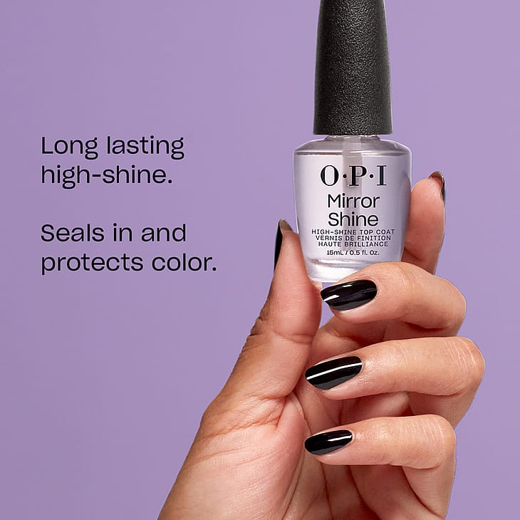 Mirror Shine Top Coat -päällyslakka antaa kynsille ylellisen kiiltävän pinnan, joka suojaa pitkäkestoisesti haalistumiselta ja halkeilulta.