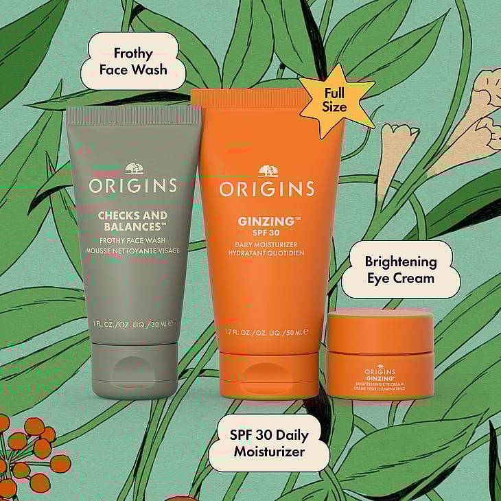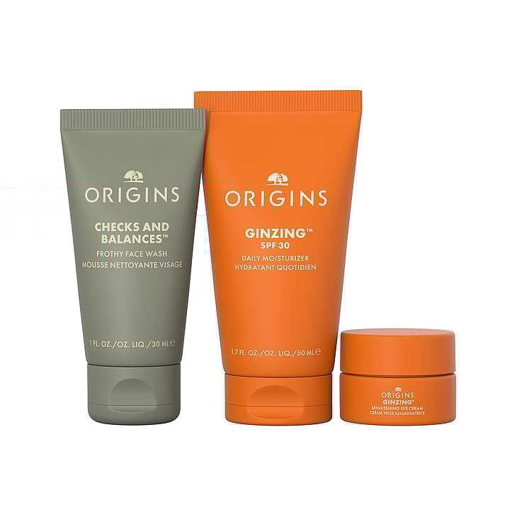 Anna joululahjaksi kaikkein suurimmat hitit. Checks and Balances™ Frothy Face Wash poistaa iholta epäpuhtaudet ja ylimääräisen öljyn; GinZing™ SPF 30 Daily Moisturizer kosteuttaa, antaa hehkua, aurinkosuojan ja antioksidanttisen suojan; ja GinZing™ Brightening Eye Cream auttaa vähentämään turvotusta ja saa silmät näyttämään kerrassaan säteileviltä.