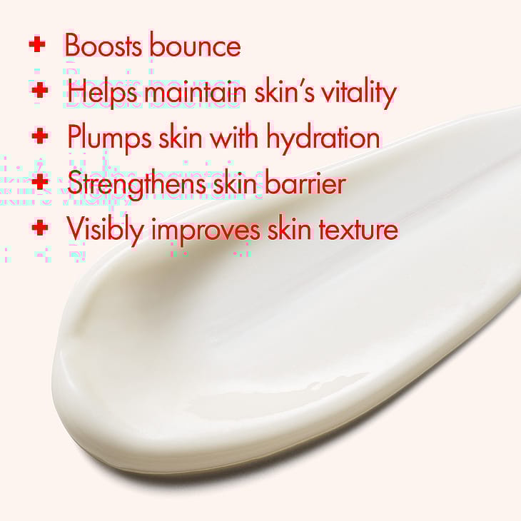 Tämä ihon kimmoisuutta lisäävä peptidikosteusvoide, jossa on omenansiemenöljyä, skvalaania, omenan kantasolu-uutetta ja antioksidanttipitoista fermentoitua omenankuorta, kosteuttaa ihoa, auttaa säilyttämään ihon elinvoimaisuuden, vahvistaa ihon suojamuuria ja pienentää ihohuokosia. Iho tuntuu kimmoisalta ja näyttää raikkaalta ja terveeltä.