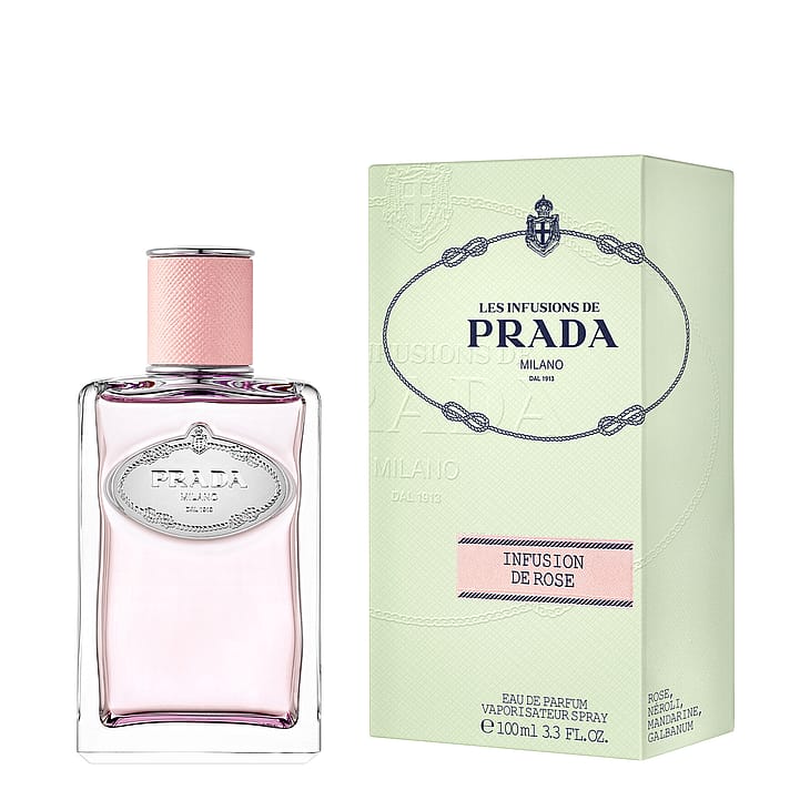 Kaunis ja moderni Infusion de Rose Eau de Parfum huokuu Pradan nykyaikaista näkemystä ruususta. Kukkaistuoksu kuvastaa ylellistä ruusua, johon on yhdistetty raikasta nerolia ja mandariinia kallisarvoisen galbanumin tuoksun vahvistamana. Infusion de Rose -pullo ilmentää Pradan koodien olennaisinta olemusta: vintagea ja hienostuneisuutta, jossa on aavistus fantasiaa saffianon pinkin korkin ansiosta.