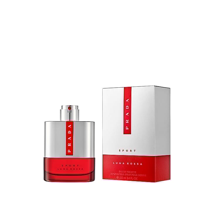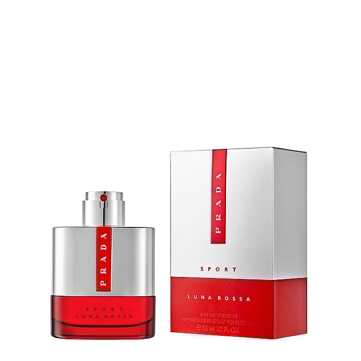 Prada Luna Rossa Sport Eau de Toilette on stimuloiva itämainen saniaistuoksu. Tuoksussa nousevat esiin rohkeat ainesosat: pirskahteleva laventeli, aistikas inkivääri ja intensiivinen heinän tuoksu. Prada Luna Rossa Sport Eau de Toilette heijastelee miehen onnistumisia äärimmäisissä haasteissa. Se on tuoksu miehelle, joka panostaa suoritukseensa ja rikkoo rajoja. Prada Luna Rossa Sportin pullo kuvastaa miehen ja purjeveneen teknisesti ylivertaisten ominaisuuksien yhdentymistä. Elegantti, metallinhohtoinen hopea, miellyttävä punainen väri ja Pradan ikoninen logo luovat esteettisesti jännittävän vaikutelman.