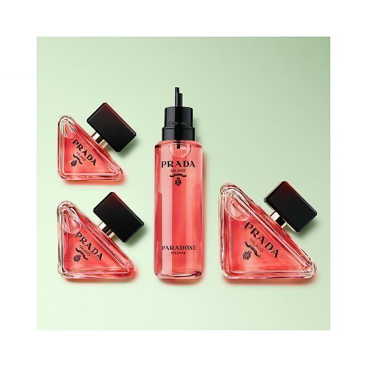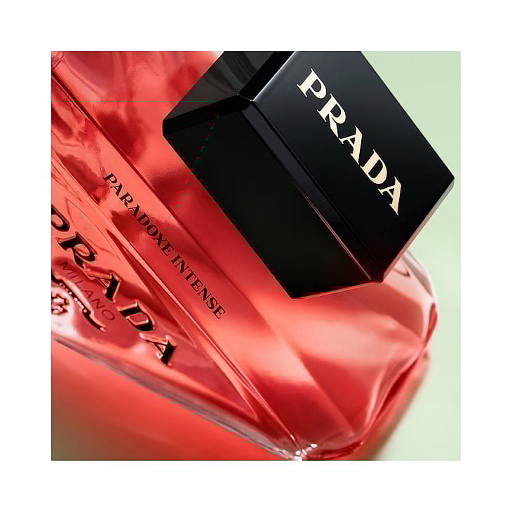 Prada Paradoxe Intense Eau de Parfum, Pradan uusi naisellinen intensiteetti. Tämä naisellinen tuoksu tutkii herkkyyden voimaa. Tuloksena on ikuisesti muuttuvan naisen intensiivinen luonne, joka haastaa sovinnollisen tutkimaan naisellisuutta, joka on sekä voimakas että herkkä. TUOKSU: HERKKIEN AINESOSIEN JA VASTAKOHTIEN VOIMA Kukkaisa ambrainen tuoksu, jonka metsäiset yksityiskohdat paljastavat herkkien ainesosien paradoksaalisen intensiteetin: herkän jasmiininkukan voimakkaan vivahteen sekä ambran eloisan ja ympäröivän lämmön, jota korostaa hillitty mutta tunnistettava sammaleyhdiste. Se on intensiivinen tuoksu, joka antaa salaperäisen ja kiehtovan vaikutelman naisellisuudesta. Kukkaistuoksun intensiteetti ja jasmiinin superinfuusio luovat poikkeuksellisen auran. Bioteknologian avulla tuotetun AmbrofixTM aistillisuus on entistä voimallisempi. Vangitseva metsäinen riippuvuutta aiheuttava intensiteetti ja rohkea ja voimakas sammalyhdiste. • Ensituoksu: Jasmiininkukka • Sydäntuoksu: AmbrofixTM • Pohjatuoksu: Sammalyhdiste PULLO: HERKKÄ, MUTTA KAPINALLINEN Alkuperäisen nimikkopullon tavoin Paradoxe Intensen päivitetty pullo ilmentää Pradan uudistumisen ydintä ja rakkautta kontrasteihin. Toisin kuin perinteinen pullomuotoilu, tämä pullo on ensisilmäyksellä minimalistinen ja herkkä. Se on saanut inspiraationsa alkuperäisestä ikonisesta Prada-kolmiologosta, joka on kapinallisesti suunniteltu lepäämään sivulla. Pradan vaakunalogo on vastakohtana tuoksun syvälle vaaleanpunaiselle värille. Pullon yläreunassa on "Paradoxe Intense" -viiste. NAINEN: EI KOSKAAN SAMANLAINEN, AINA OMA ITSENSÄ Herkkyyden ja voiman odottamaton vuorovaikutus on Pradan mallistojen ytimessä, ja Prada pyrkii aina haastamaan odotukset ja normit. Prada Paradoxe Intense tutkii naisellisuuden tyypillisiä piirteitä: pehmeyttä, aistillisuutta ja haurautta ja tulkitsee niitä uudelleen ehdottaakseen uusia merkityksiä naiselle, joka ei koskaan pysy samanlaisena, vaan on aina oma itsensä. Se on määrittelemättömän naisellisuuden ilmentymä, joka ylittää odotukset ja lisää niihin odottamatonta intensiteettiä. PAKKAUKSET: LUOVUUTTA JA VASTUULLISUUTTA Uudet pakkaukset, rasiat ja pullot ovat kierrätettäviä. Lasipullot on suunniteltu mahdollisimman kevyiksi ja lasia on käytetty mahdollisimman vähän. Laatikot ovat FSC™ MIX -sertifioituja, mikä varmistaa kestävämmän paperi- ja pahvivalinnan. Koko Prada Paradoxe -sarja voidaan täyttää uudelleen, mikä vähentää pakkausmateriaalin määrää. Yhdessä 50 ml:n Prada Paradoxe Intense -pullossa ja 100 ml:n täyttöpullossa käytetään yhteensä 40 % vähemmän materiaalia kuin kolmessa 50 ml:n Prada Paradoxe Intense -pullossa: Lasia on 29 %, metallia 67 %, muovia 46 % ja pahvia 39 % vähemmän.