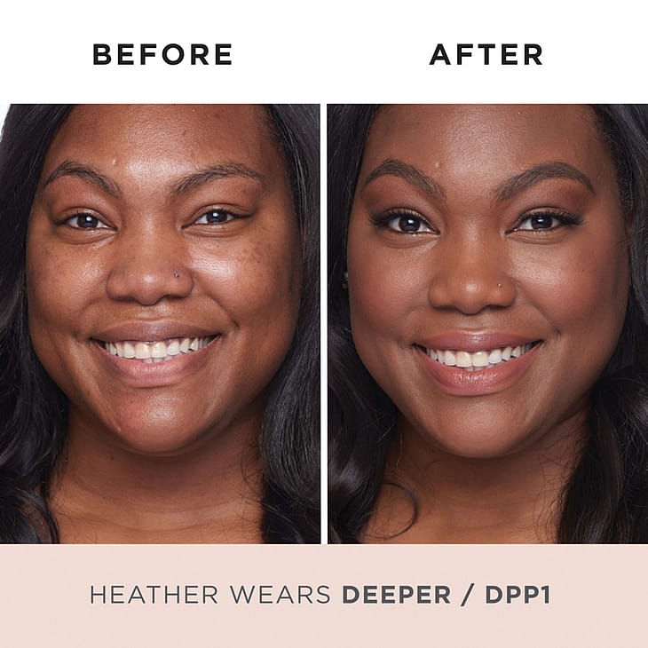 Active Ingredients: Titanium Dioxide 9.0 %. Inactive Ingredients: Mica, Caprylic/Capric Triglyceride, Boron Nitride, Bismuth Oxychloride, Zinc Stearate, Magnesium Silicate, Sodium Starch Octenylsuccinate, Mannitol, Sodium Gluconate, Citric Acid, Sodium Citrate, Waltheria Indica Leaf Extract, Dextrin, Ferulic Acid, Lactic Acid (L), Butyrospermum Parkii (Shea) Butter, Retinol, Ceramide AP, Silica, Tocopheryl Acetate, Aqua, Glucosamine HCI, Pisum Sativum (Pea) Extract, Bambusa Vulgaris Leaf/Stem Extract, Magnesium Carbonate, Iron Oxides (CI 77491, CI 77492, CI 77499), May Contain: Titanium Dioxide (CI 77891), Ultramarines (CI 77007)