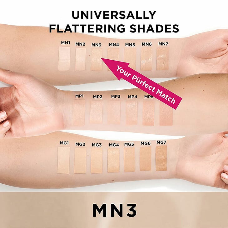 Voide, joka todella pysyy (kehitetty kestämään jopa 24 tuntia)! Tässä tuotteessa yhdistyy sekä meikkivoide että peitevoide, ja sitä voi käyttää kahdella tapaa. Peittää luonnollisesti ja sisältää ihoa hoitavia ainesosia, kuten ikääntymisen vaikutusta ehkäisevää PÜRin Ceretin® Complex -yhdistettä ja hehkua antavaa ja kiinteyttävää Energy Complex -yhdistettä. Vegaaninen koostumus.