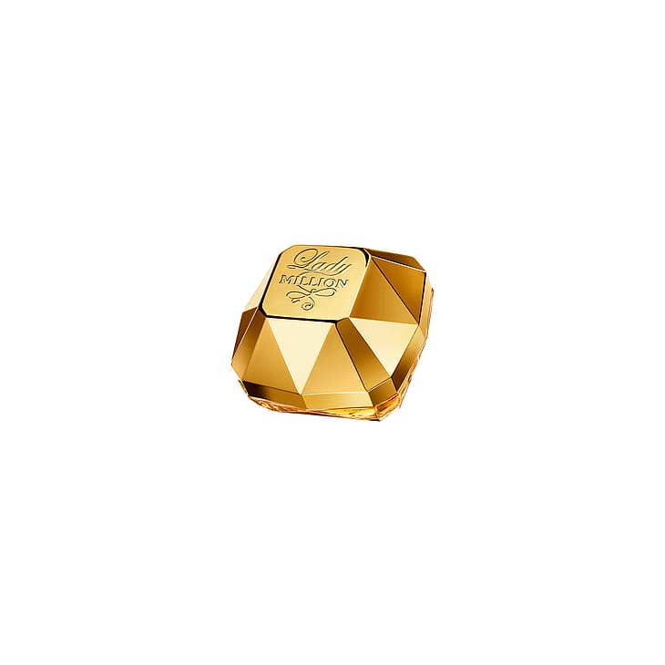 Moniulotteinen timantinmuotoinen pullo, arkkitehtoninen ja säihkyvä, inspiraationaan legendaarinen «The Regent» -timantti Louvressa. Ylellinen, ikoninen ja luotu vangitsemaan sekä valoa että katseita. Lady Million on itsevarman, vastustamattoman kauneuden symboli.