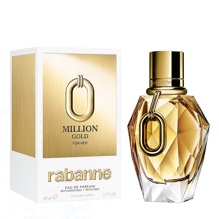 Million Gold for Her Eau de Parfum on Rabannen tuoksuva kruununjalokivi. Moniulotteisesta lasista valmistettu tyylikäs ja hienostunut pullo avartaa sisällä olevaa kullanhohtoista tuoksua. Hajuvettä koristaa huomiota herättävä yksityiskohta, jonka juuret ovat Maison-talon rikkaassa historiassa: ikoninen XL-linkki. Tuoksu, joka yhdistää saumattomasti koruja ja hajuvesitaidetta, ja joka symboloi säkenöivää itsevarmuutta ja menestystä.