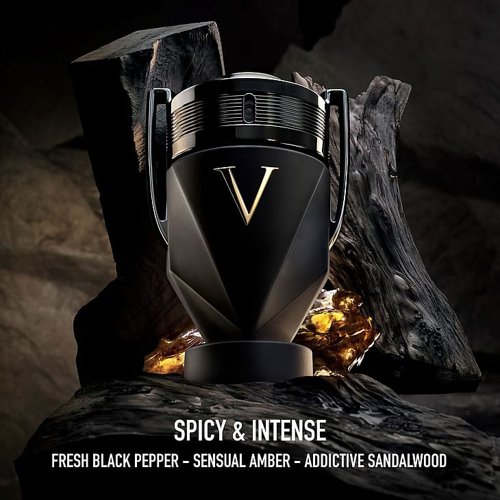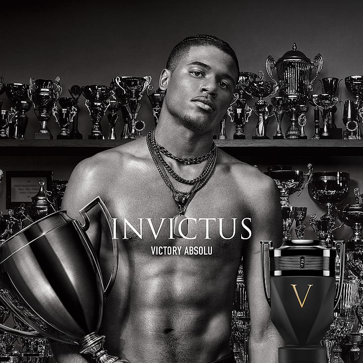 Uuden voiton aikakauden vakiinnuttamiseksi INVICTUS-pokaali on saanut entistäkin erottuvamman muotoilun, jonka veistoksellinen V-muoto on saanut inspiraationsa mustan vulkaanisen kiven kesyttämättömästä voimasta. Pokaalin kruunaa kullanvärinen V-kirjain, joka on Victory-universumin ajaton symboli ja jonka tarkoituksena on saada sinut tavoittelemaan voittoa. Matta-musta hajuvesipullo muodostaa kontrastin kiiltävään korkkiin nähden, mikä symboloi raikkauden ja aistillisuuden välistä kaksintaistelua - yhteentörmäystä, joka paljastuu flakoniin vangitun tuoksun kautta.