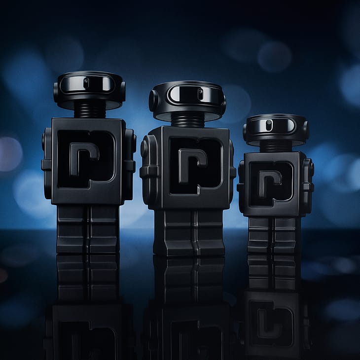 PHANTOM Parfum on hienostuneen muotoilun mestariteos. Mattamusta pullo on veistetty puhtailla, graafisilla viivoilla, jotka vangitsevat yön energian ja salaperäisen eleganssin.