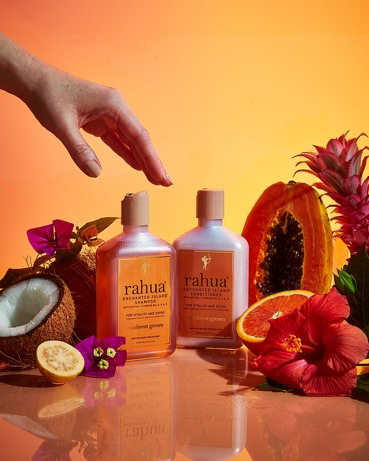 Juhlistamme maanpäällistä paratiisia tällä Rahuan Enchanted Island™ Shampoolla, joka vahvistaa ja antaa kiiltoa kaikille hiustyypeille. Runsaasti vitamiineja ja antioksidantteja sisältävä shampoo elävöittää hiuksia. Sisältää kasvipohjaista Biotiinia, B6-, A-, C- ja E-vitamiinia, jotka tervehdyttävät hiuksia ja vahvistavat hiustuppea ja auttavat estämään ennenaikaista hiustenlähtöä.
