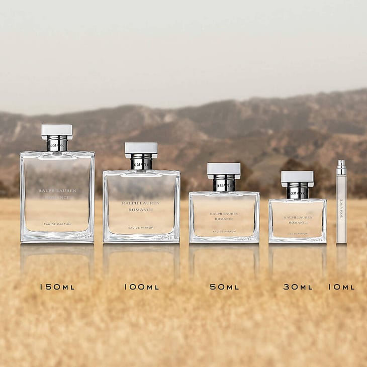 Eleganttiin ja säteilevään pulloon pakattu Romance Eau de Parfum heijastaa modernin naisen kauneutta ja voimaa. Tyylikäs, arkkitehtoninen muotoilu on saanut inspiraationsa Ralph Laurenin muotimaailmasta ja kuvastaa tuoksun hienostuneisuutta.