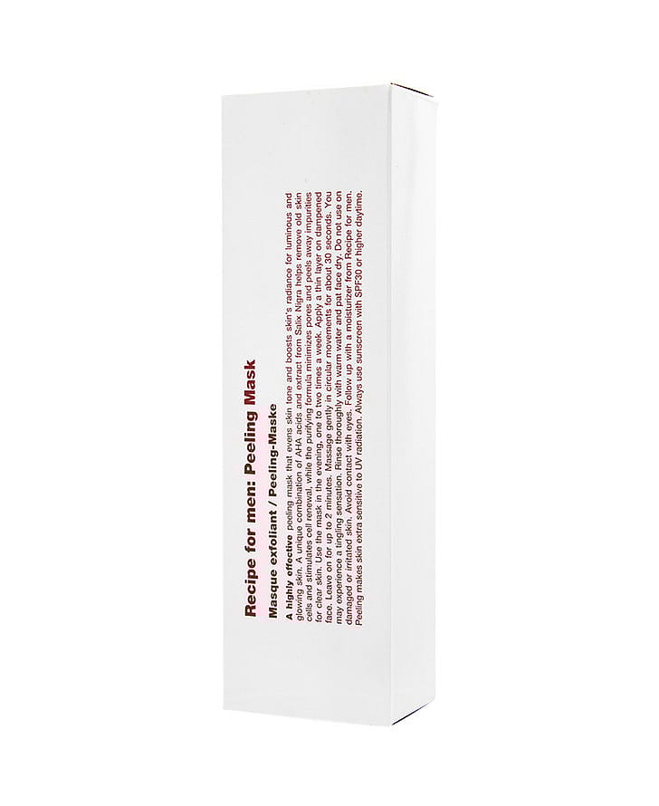 Tehokas kuoriva naamio, joka saa ihon hehkumaan ja tasoittaa ihon sävyä. Recipe For Menin ainutlaatuinen yhdistelmä AHA-happoja ja paju-uutetta puhdistaa tukkeutuneet huokoset, irrottaa kuollutta ihosolukkoa ja kiihdyttää solujen uusiutumista. Se puhdistaa ja uudistaa ihon pintaa, supistaa ihohuokosia ja poistaa mustapäitä.